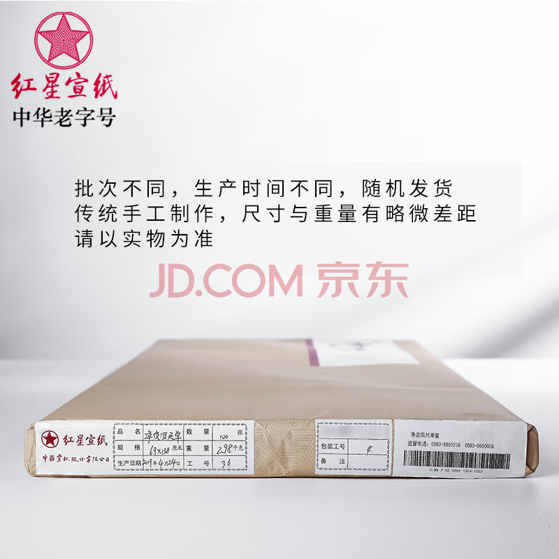 商品相册:红星 宣纸 净皮单宣四尺六尺100张 文房四宝书法国画写意创作品安徽泾县古法手工 四尺/100张第1张/共5