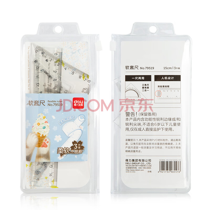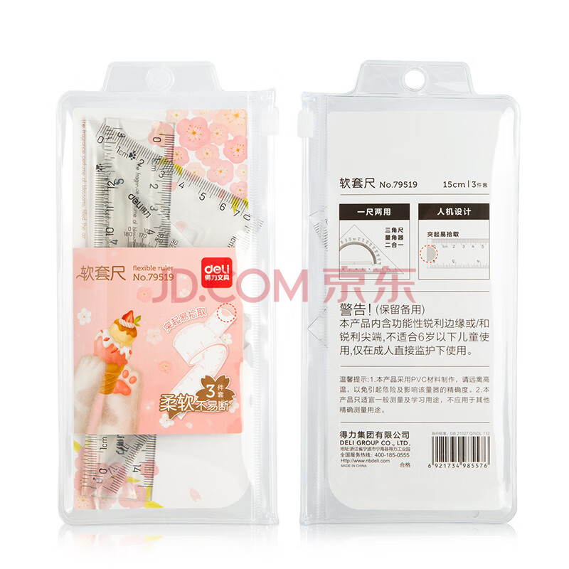商品相册:得力(deli)(deli)15cm直尺三角尺量角器考研高考中考可弯曲软尺套装 尺子 透明色生日礼物第