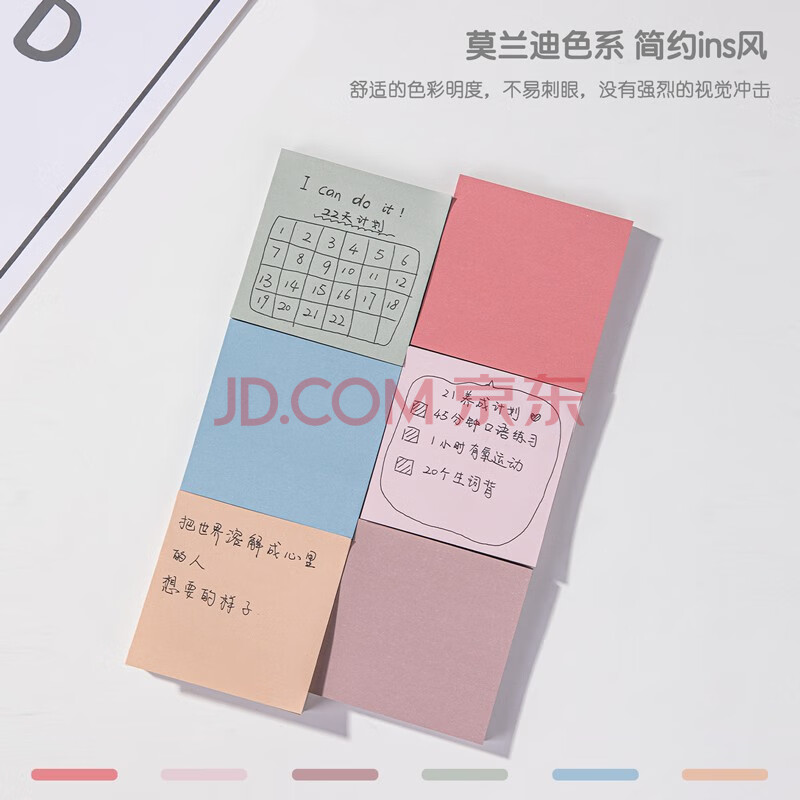 商品相册:得力(deli)淳调系列150张76*76mm莫兰迪色系便利贴便签纸 便签本/记事贴办公用品 21553第