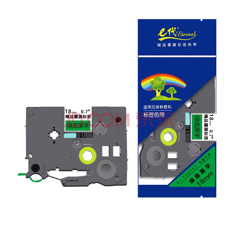 商品相册:e代标签色带18mm绿底黑字TZe-741适用brother兄弟PT-P700标签机D450打印机P900W标签纸打印纸第