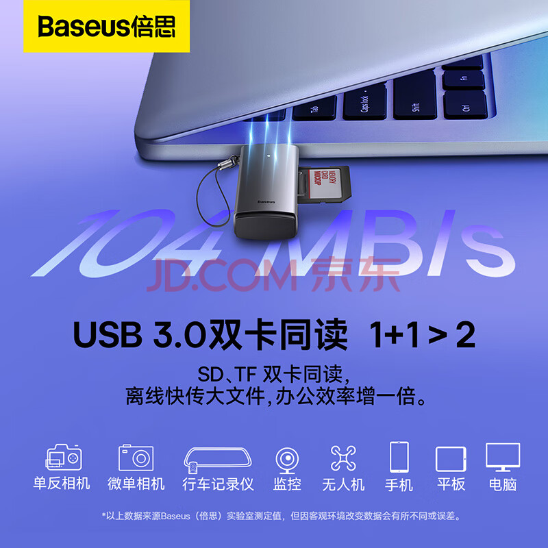 商品相册:倍思 USB3.0高速读卡器 多功能SD/TF读卡器多合一 支持手机单反相机行车记录仪监控存储内存卡第