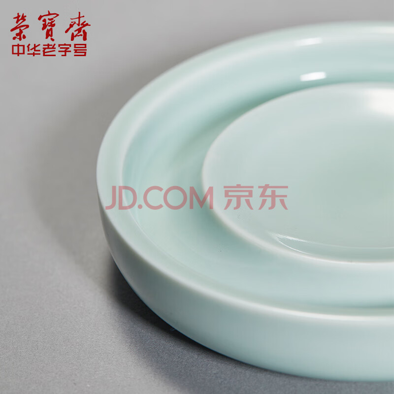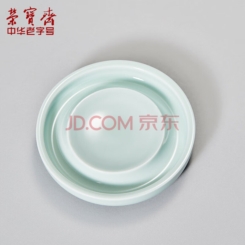 商品相册:【全网低价】荣宝斋 墨碟 文房四宝书法国画笔搁笔架笔掭砚台陶瓷器调色盘笔掭 青瓷小墨碟(豆青色)第