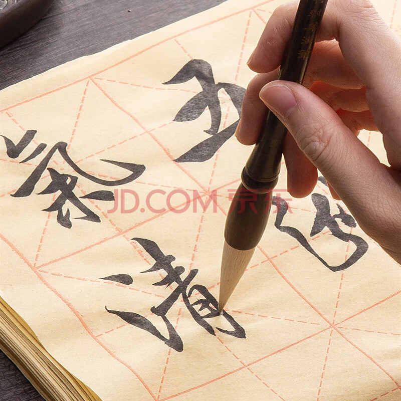 商品相册:一海堂 文化【全网低价,真便宜直播间】毛笔字帖 9厘米*28格米字格毛边宣纸半生熟毛笔书法练习用纸 50张第
