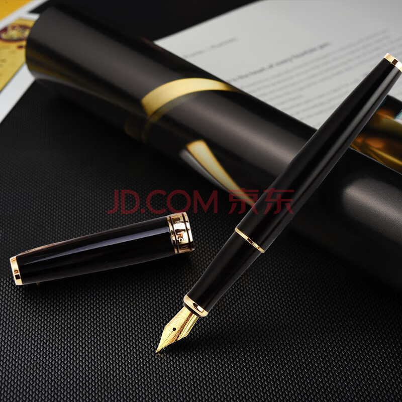 商品相册:毕加索(pimio)钢笔签字笔商务办公礼品 成人学生练字 男女生日礼物EF铱金墨水笔何塞系列722亮黑金夹第