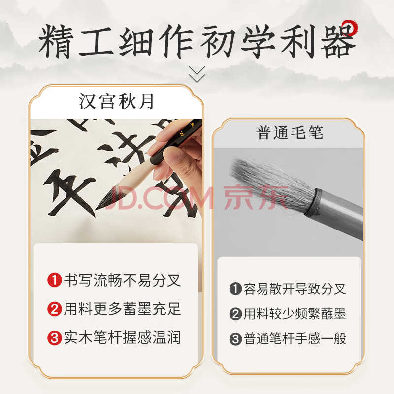 商品相册:【全网低价,真便宜直播间】六品堂 文房四宝毛笔狼毫兼毫羊毫毛笔大中小楷书法用笔行楷书 汉宫秋月(羊毫)小楷1支第