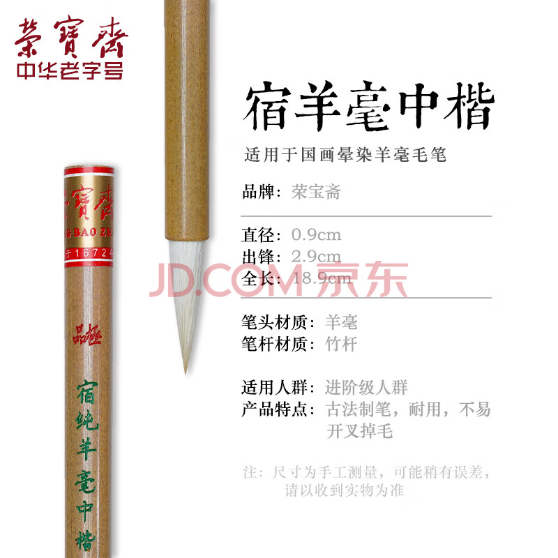 商品相册:【全网低价,真便宜直播间】荣宝斋 文房四宝 毛笔湖笔双羊牌初学者学生成人篆书隶书行楷书法练习笔 宿羊毫中楷第