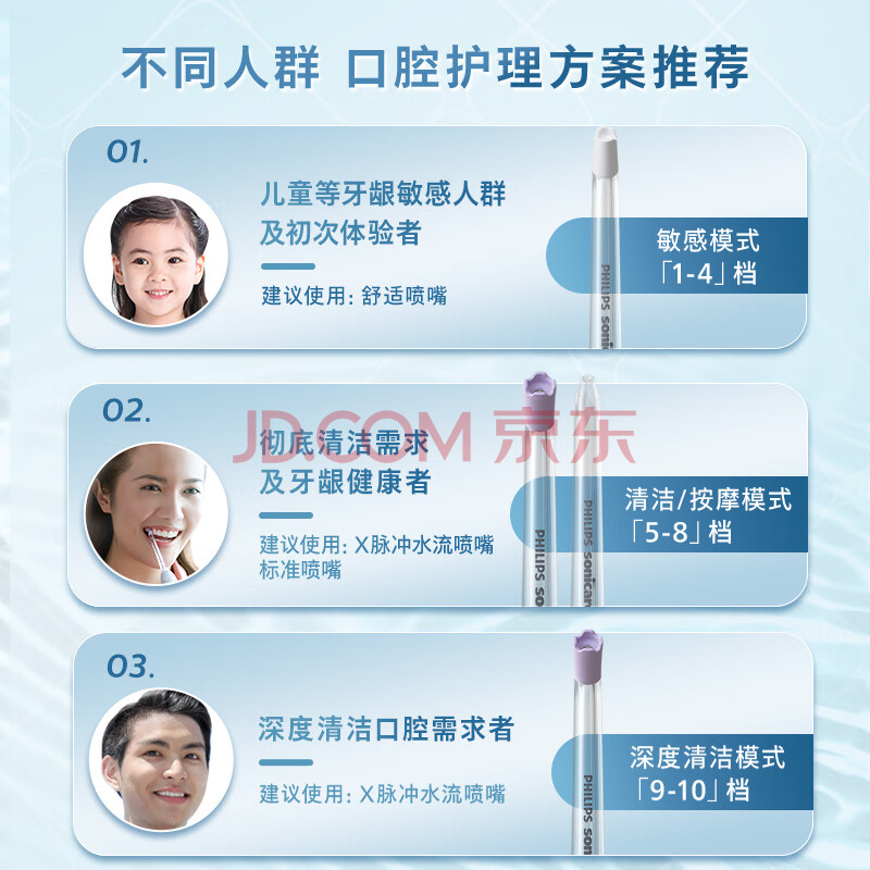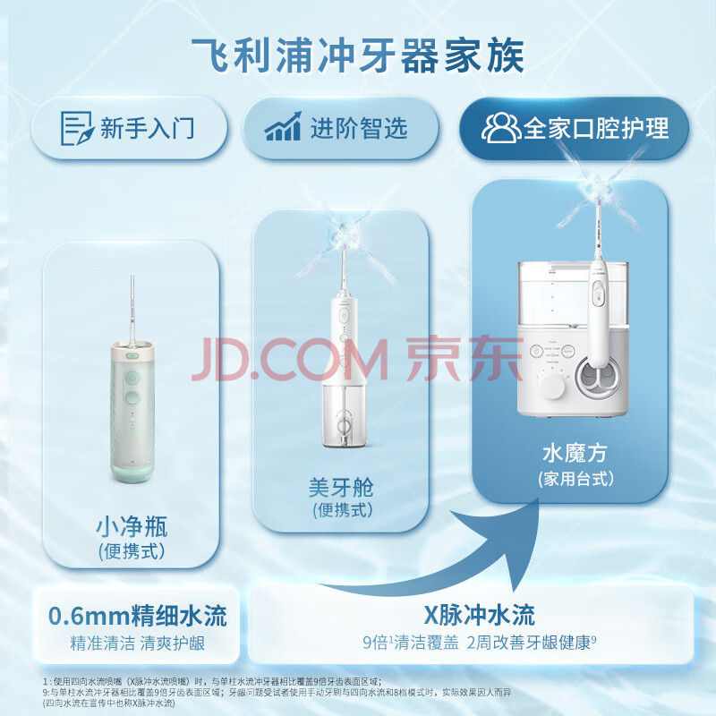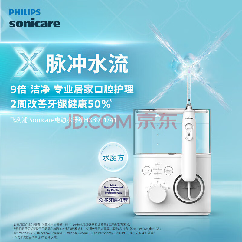 商品相册:飞利浦(PHILIPS)家用台式冲牙器洗牙器 新年生日礼物 四向水流科技4种模式 水魔方白色HX3911/4第