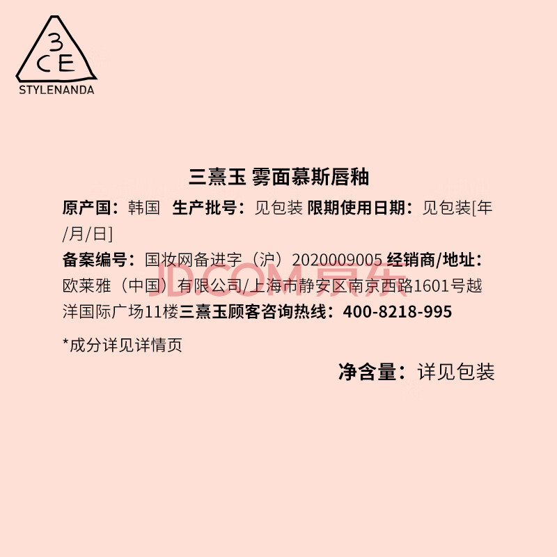 商品相册:3ce雾面慕斯唇釉莓果森林BEARBERRY烟熏树莓唇膏生日礼物女神节礼物第