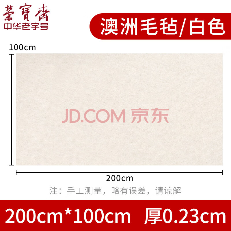 商品相册:荣宝斋书画毛毡垫 加厚初学者学生写毛笔字垫布 练字文房书法国画专用 羊毛毡 白色100*200第1张/共5