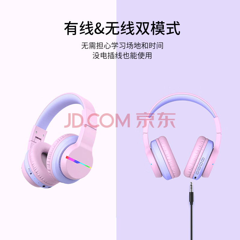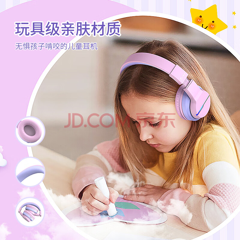 商品相册:Tribit 趣倍 头戴式儿童耳机 学生学习网课耳机 带麦克风低分贝儿童耳麦 生日礼物第
