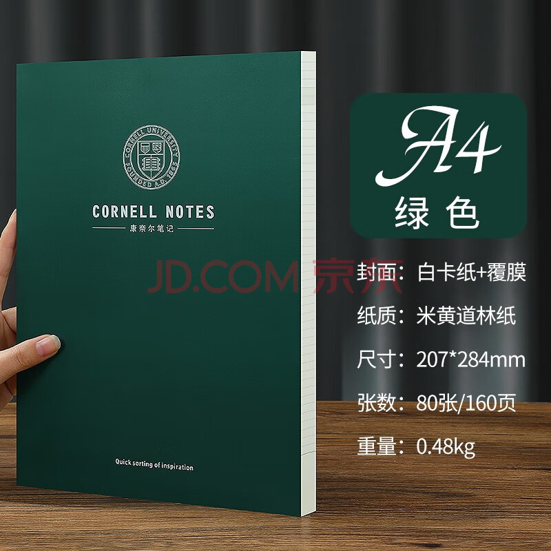 商品相册:嘉然恒 A4康奈尔本大号笔记本本子5R高效记忆思维导图学习本复习考研用本随堂笔记本-横线款-墨绿第