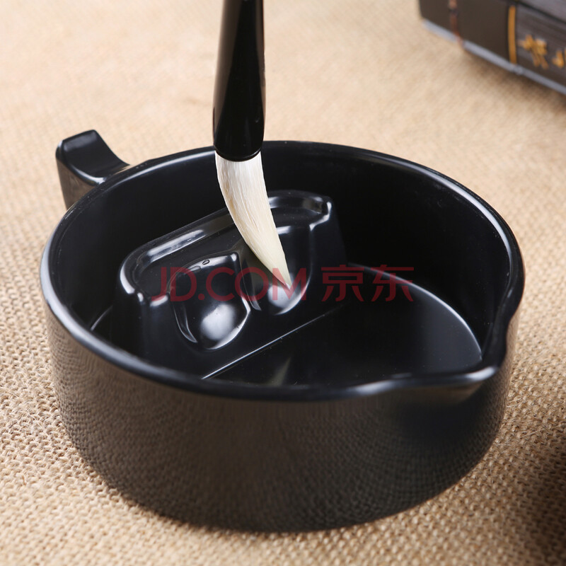 商品相册:芬尚 学生多功能墨盒砚池 仿瓷防摔带盖砚台笔搁 可盛墨汁约150ml可搁毛笔可调色Φ10.5*5cm第