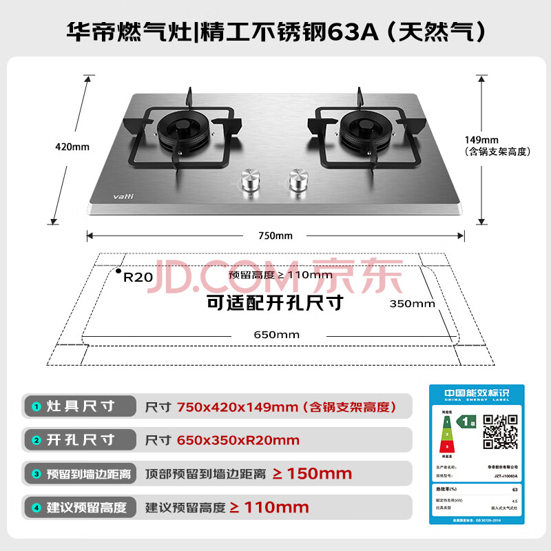 商品相册:华帝不锈钢燃气灶嵌入式4.5kW高热效易打理 双灶具灶台 i10063A 【天然气产品】第