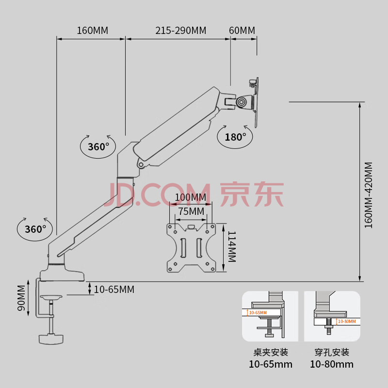 商品相册:LUCKPRO气缸显示器支架 电脑支架 显示器支架臂 旋转电脑架 桌面升降显示器支架 底座增高架 屏幕支架第