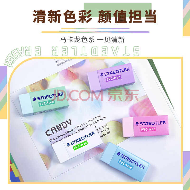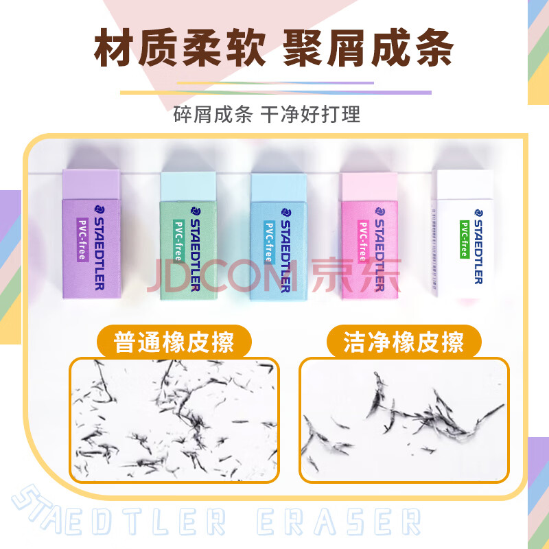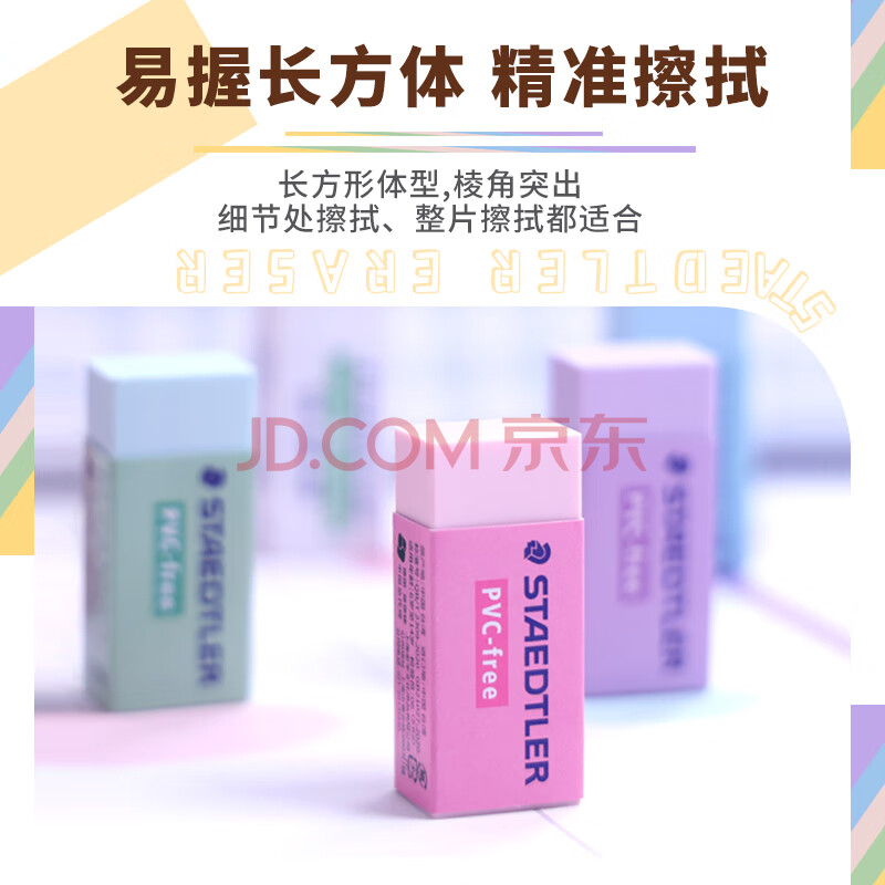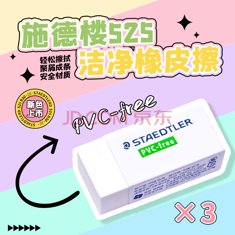 商品相册:施德楼(STAEDTLER)橡皮擦 学生用铅笔橡皮少屑干净开学必备用品不含PVC 素描绘画办公用525B30中号3个装第