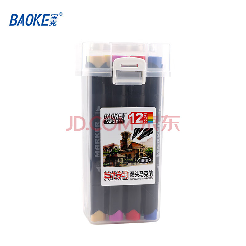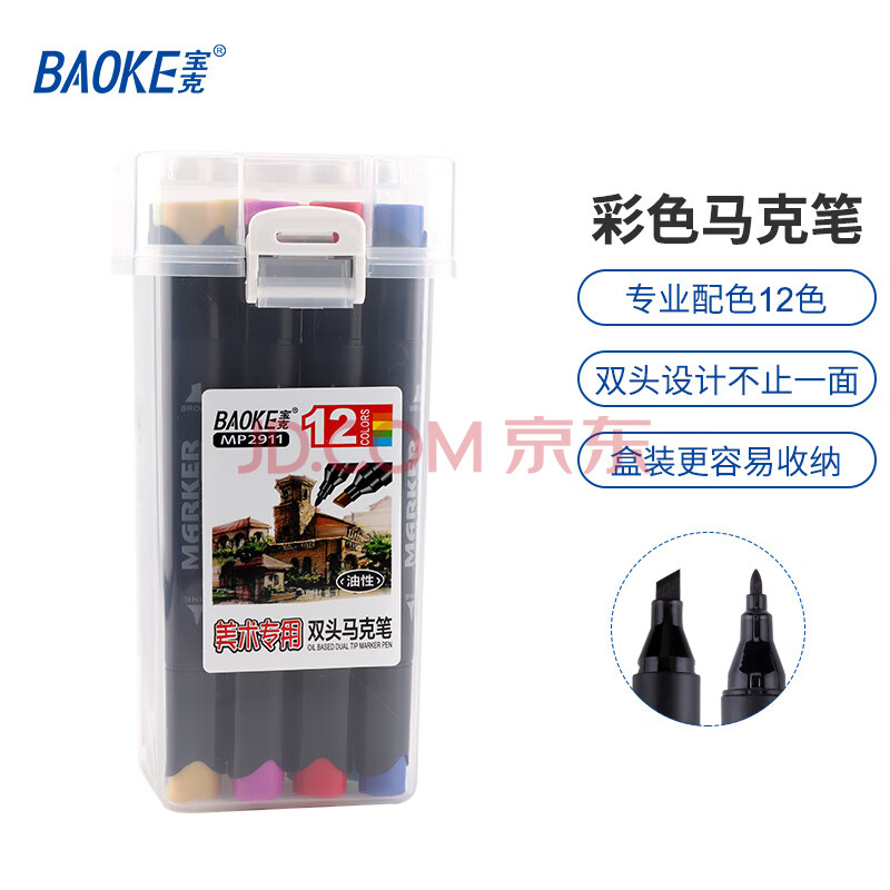 商品相册:宝克(BAOKE)MP2911-12双头酒精油性马克笔套装学生手绘漫画设计绘画彩笔画笔记号笔12色水彩笔美育第