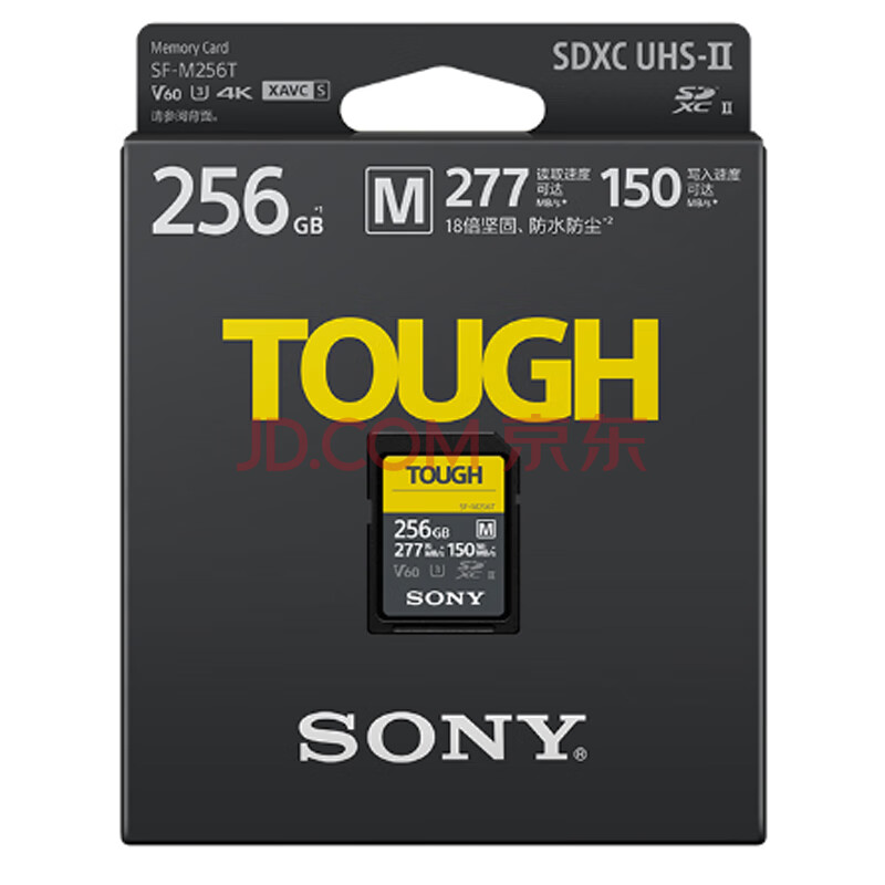 商品相册:索尼(SONY)256GB SD存储卡 SF-M256T/T1 M系列TOUGH三防规格 U3 V60读速高达277MB/s UHS-II 相机内存卡 第