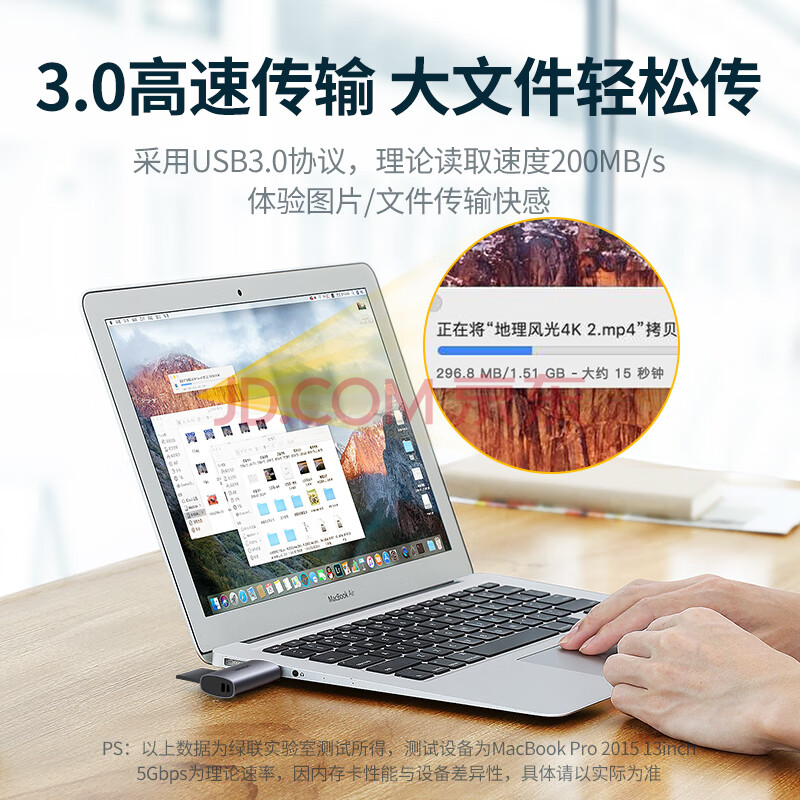 商品相册:绿联 USB3.0高速读卡器 SD/TF多合一读卡器 适用手机单反相机记录仪监控存储内存卡 双卡双读60723第