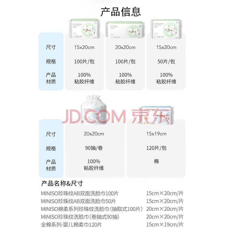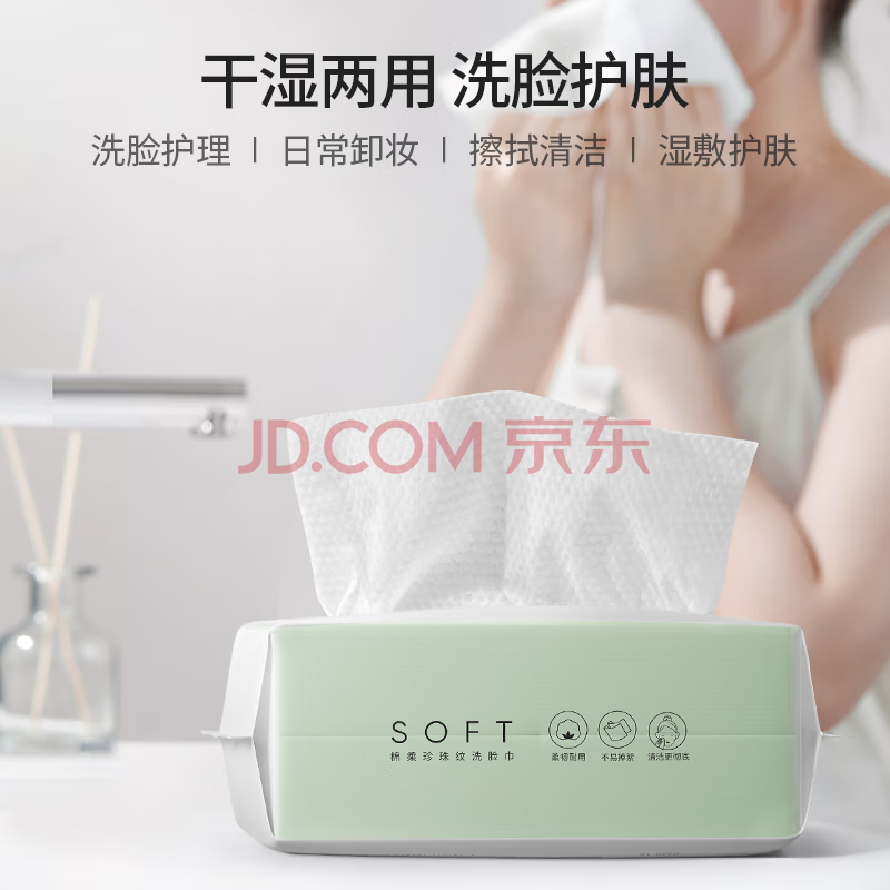 商品相册:名创优品(MINISO)洗脸巾一次性纤维柔巾干湿两用珍珠纹洗面巾洁面巾100抽*3包第