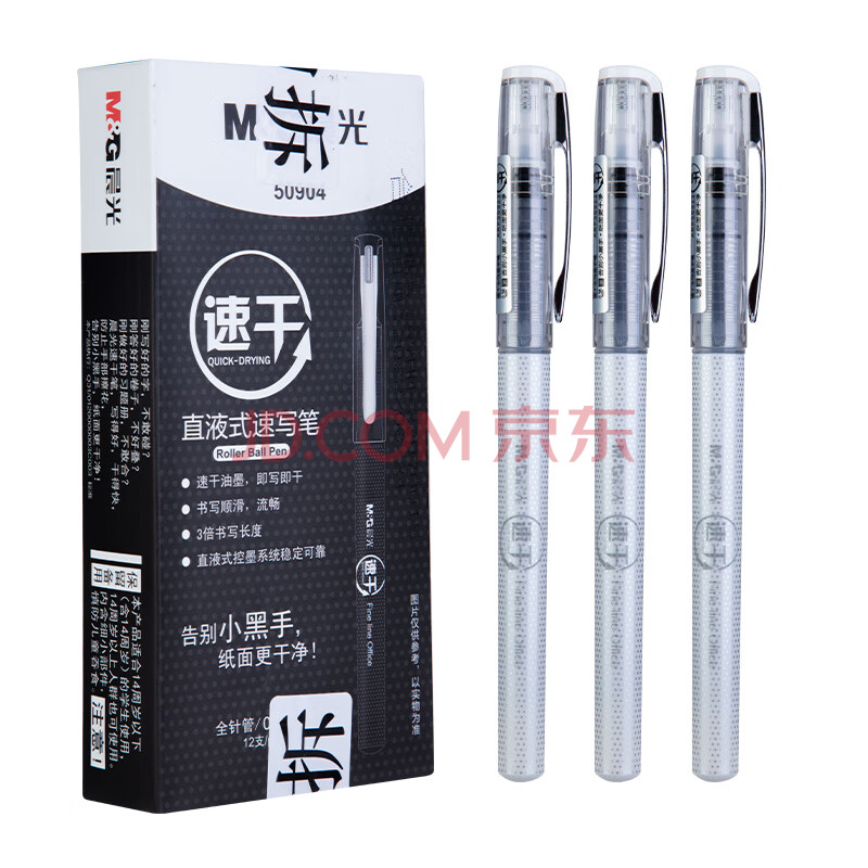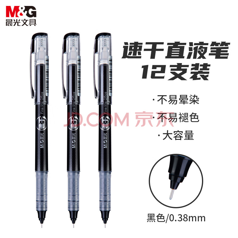 商品相册:晨光(M&G)文具0.38mm黑色中性笔 速干全针管签字笔 直液式水笔 12支/盒ARP50904第