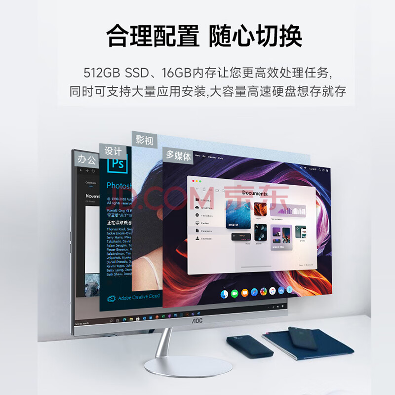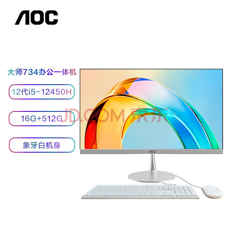 商品相册:AOC美人鱼734Pro 23.8英寸高清办公学习台式一体机电脑(酷睿i5-12450H 16G 512G)白第