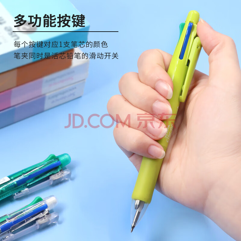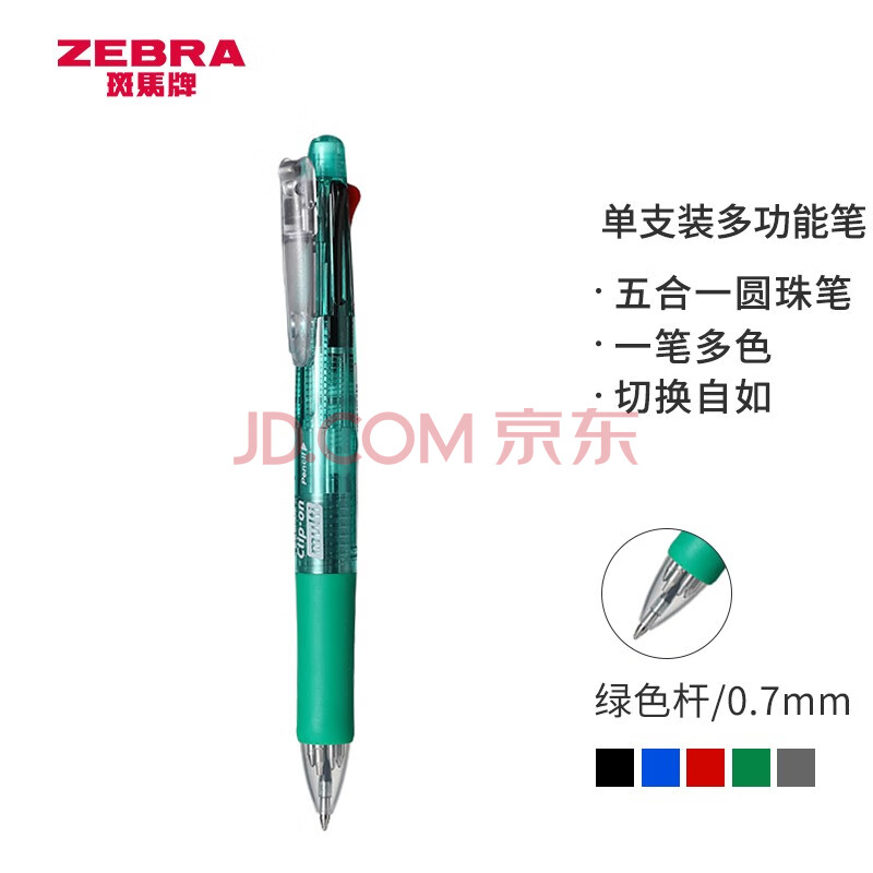 商品相册:斑马牌(ZEBRA)五合一多色笔(0.7mm四色圆珠笔+0.5mm自动铅笔)黑蓝红绿学生商务办公签字笔B4SA1 绿色杆第