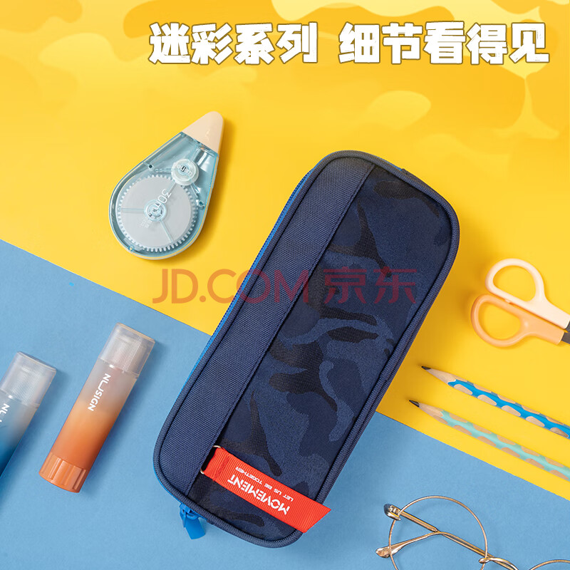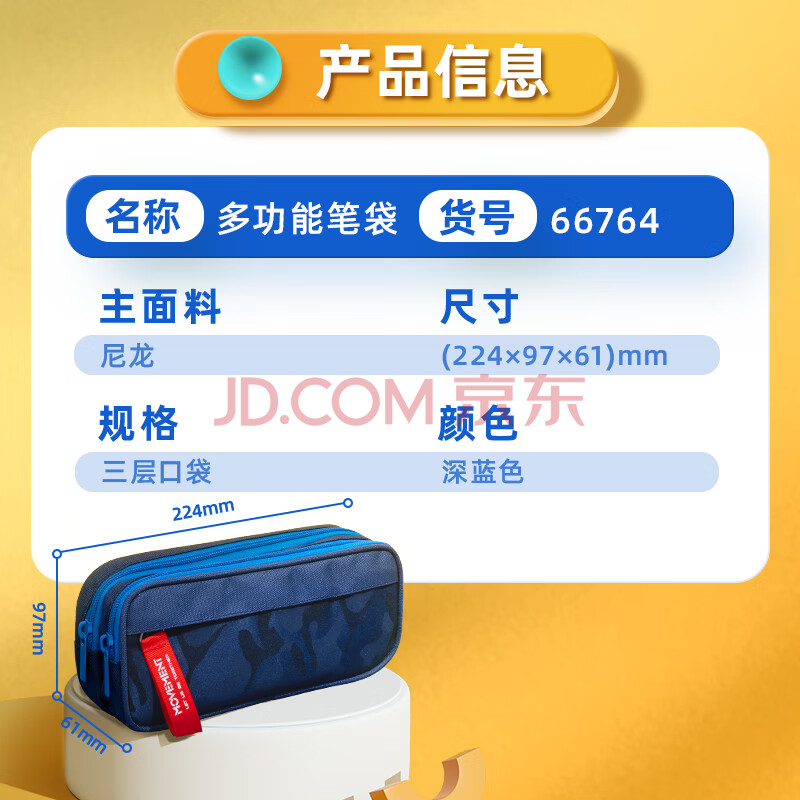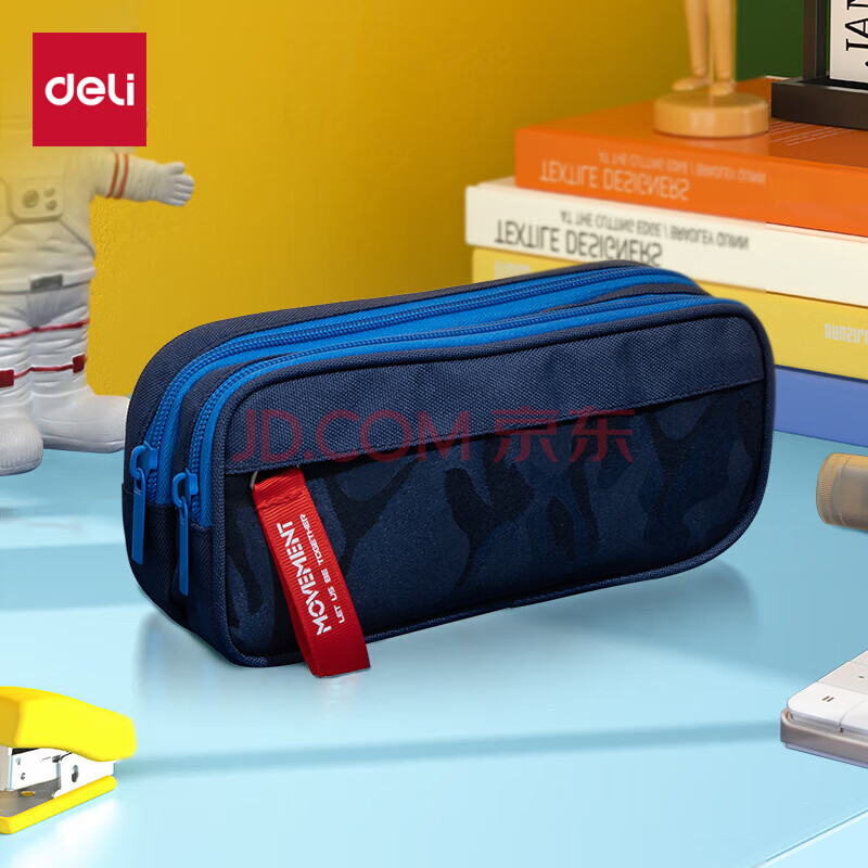 商品相册:得力(deli)迷彩笔袋小学生 儿童大容量双层袋鼠包文具盒 学生文具收纳袋 深蓝色开学必备第