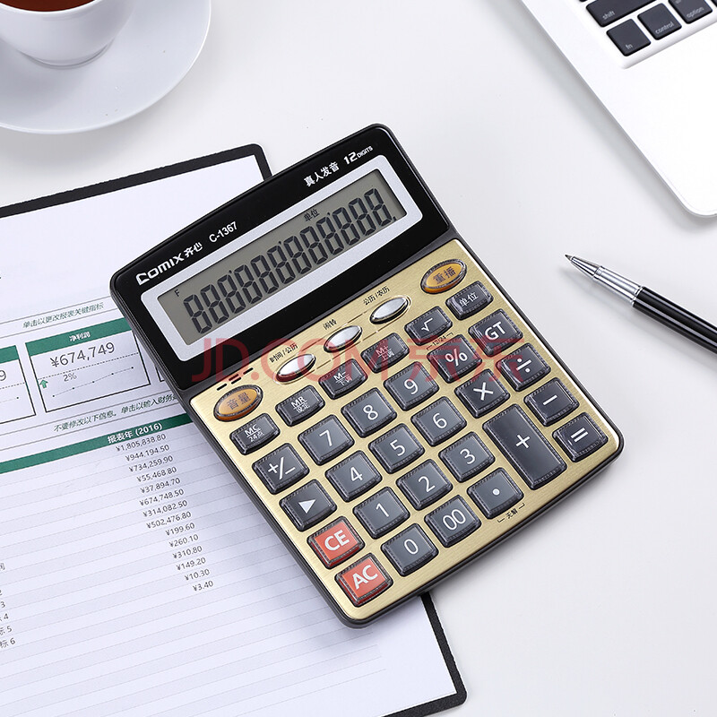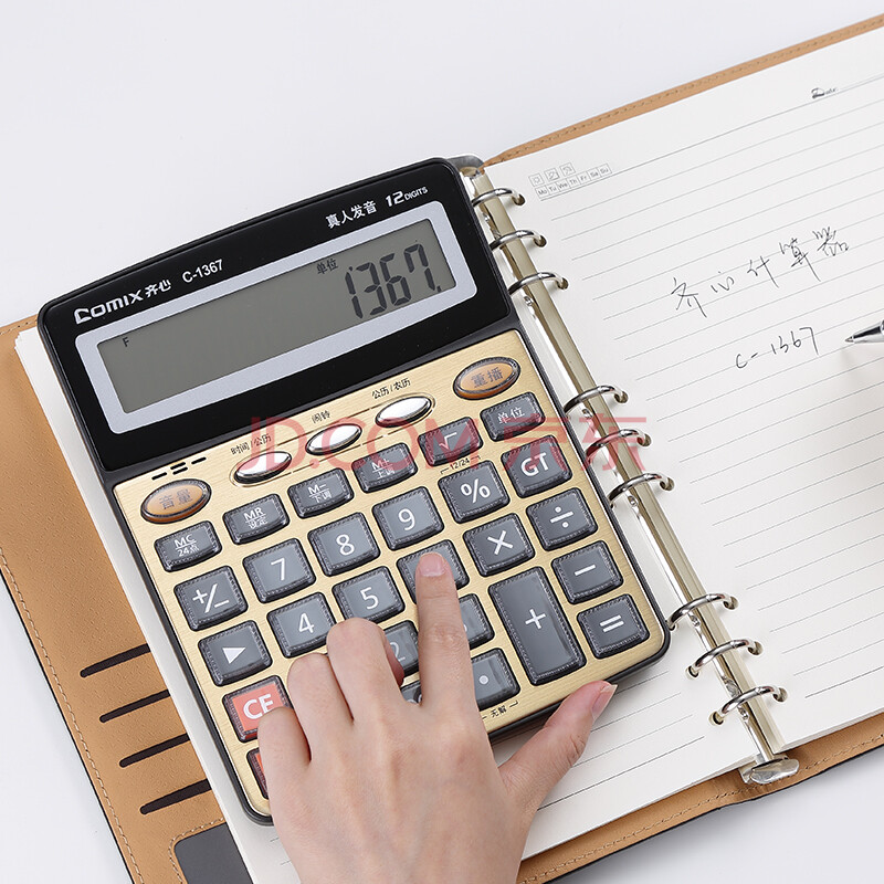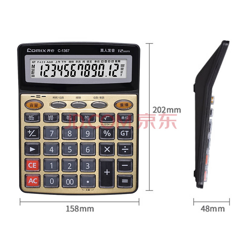 商品相册:齐心(Comix)12位宽屏语音计算器 财务金融计算机 学生/办公用品 金色 C-1367第