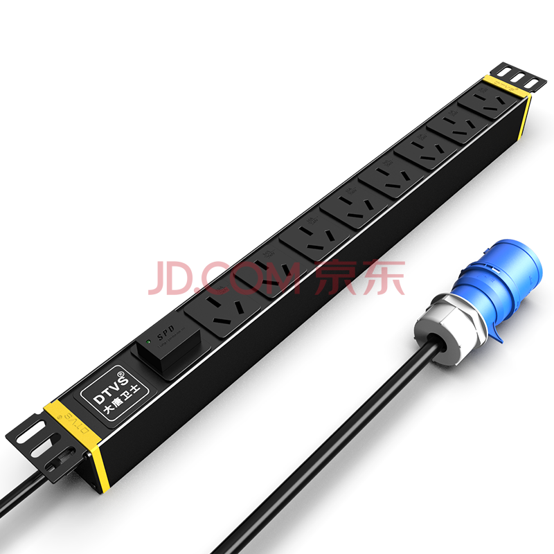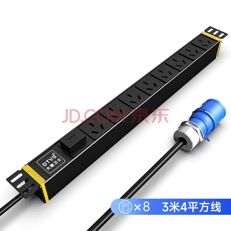 商品相册:大唐卫士 DT9082 机柜电源插排插线板 工业插座32A输入3米4平方线 输出8位16A国标孔SPD防雷第