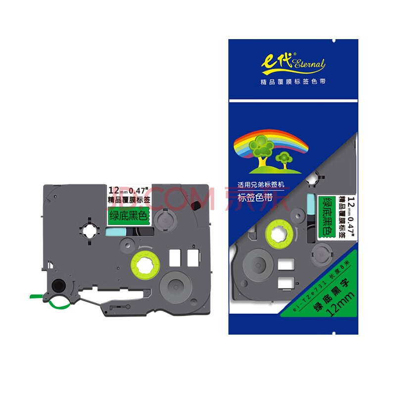商品相册:e代标签色带12mm绿底黑字TZe-731适用brother兄弟PT-D210标签机P700打印机D450标签纸打印纸e100第