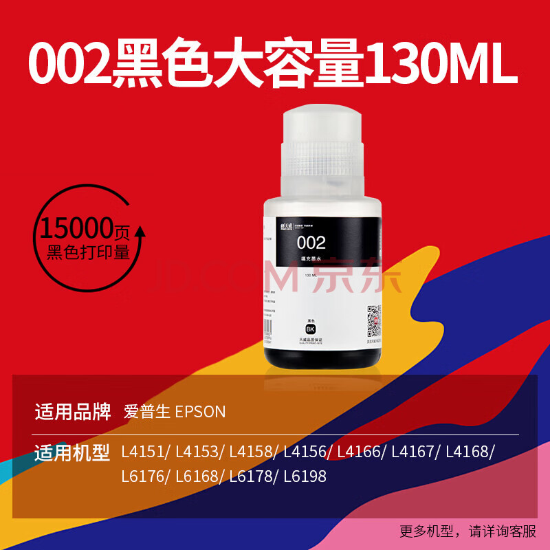 商品相册:天威适用爱普生打印机墨水L4266 L4268 L4168 L4269 4263 4158 6178 6176 6198 4169 4166 002墨水 黑色大容量第