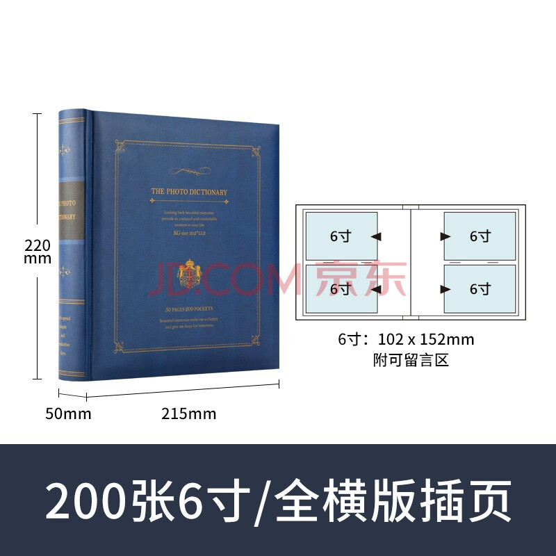 商品相册:Nakabayashi仲林插袋式相册本200张6寸/复古影集/插页小家庭相薄照片书 蓝色 BPKG-200-4-B第