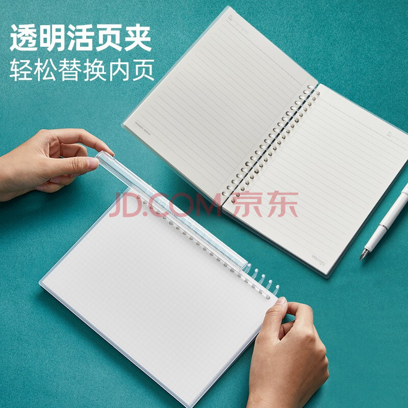 商品相册:文谷(Wengu)抽拉线圈活页笔记本子分页可拆卸学生手账本记事本20孔80页可替换内芯PL015-A5康奈尔第