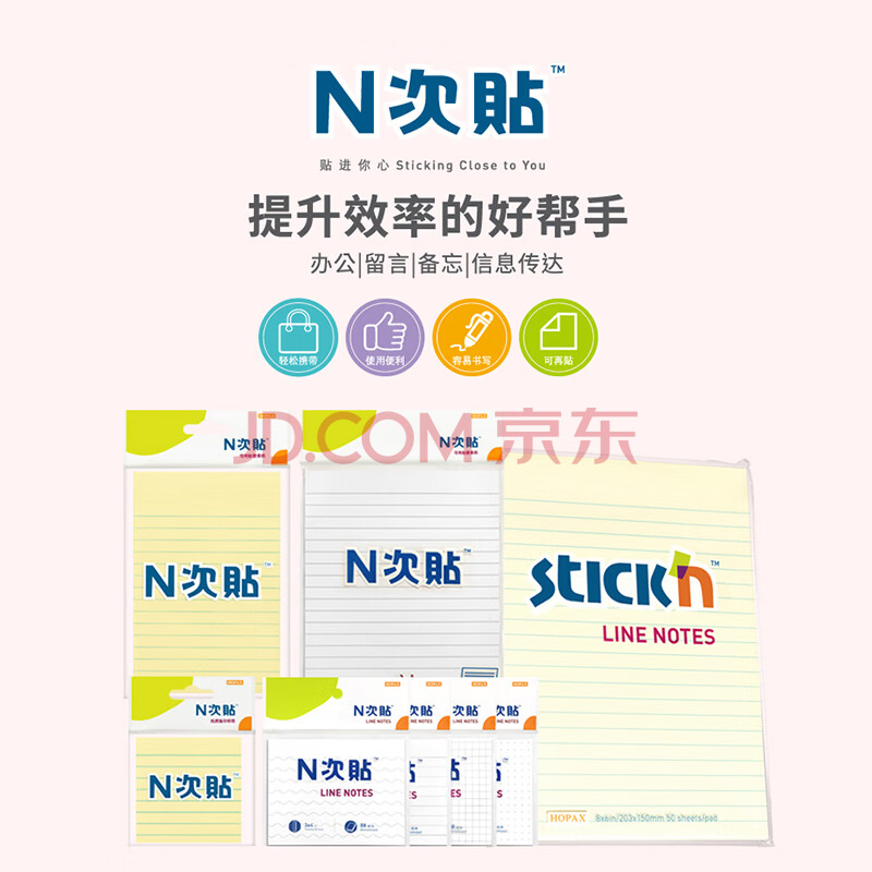 商品相册:N次贴(STICKN)横线条便签纸便利贴百事贴记事贴150*101mm 100张/本31077第