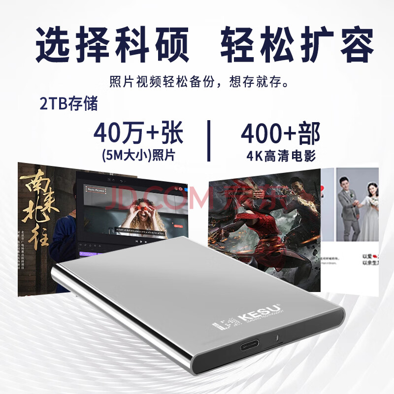 商品相册:科硕(KESU) 2TB 移动硬盘 USB3.1 大容量外接机械硬盘 海量存储 笔记本电脑手机连接 2.5英寸 家庭存储办公第