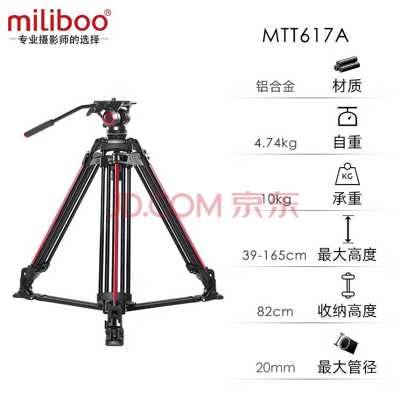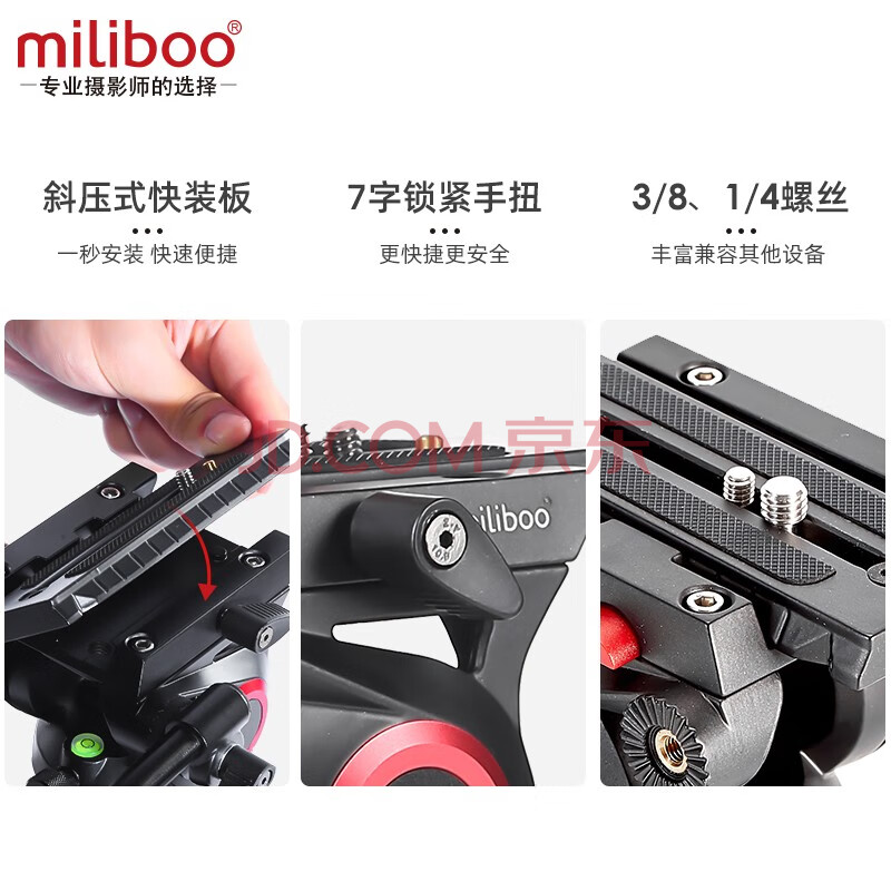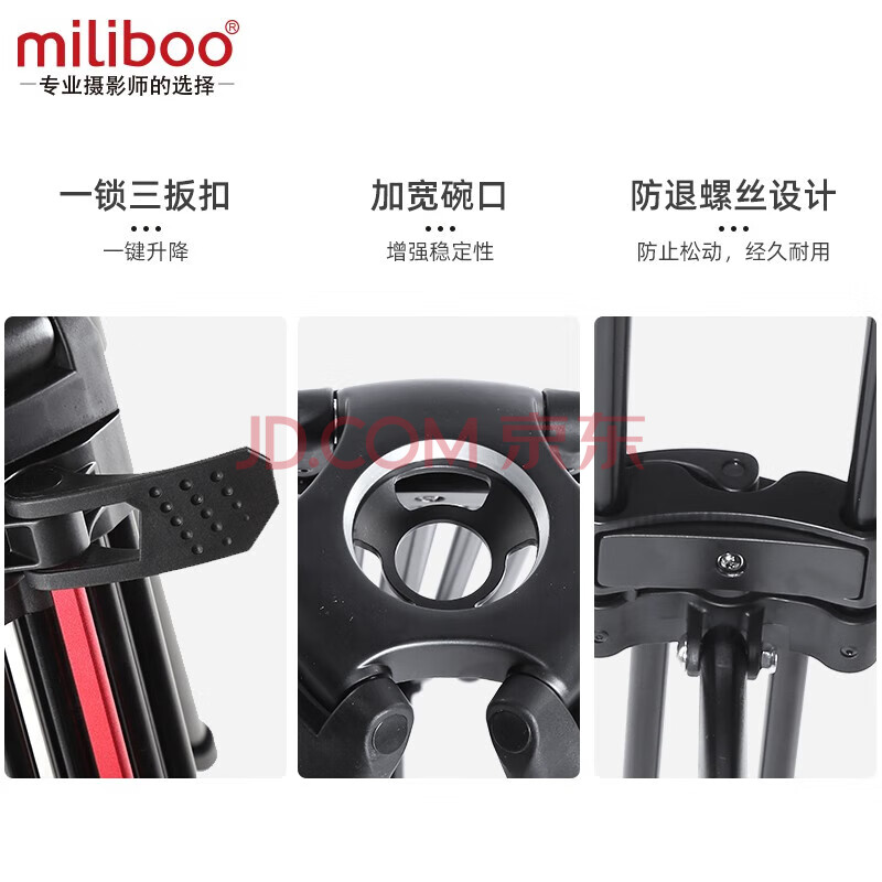 商品相册:miliboo米泊MTT617A铝合金三脚架一锁三专业一键升降摄影机摄像单反相机三角架带液压云台(地面延伸)第