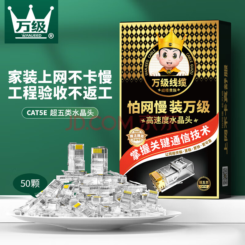 商品相册:万级水晶头超五类 RJ45网线接头8芯网络连接器50个/装 Cat5e非屏蔽水晶头 WJ-15112第