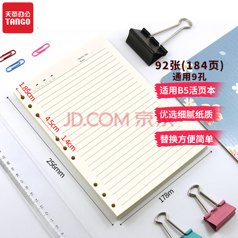 商品相册:天章(TANGO)B5活页替芯纸横线款加厚100g 适用9孔活页本考研错题作业日常笔记会议记录可拆卸通用替换芯 92张第