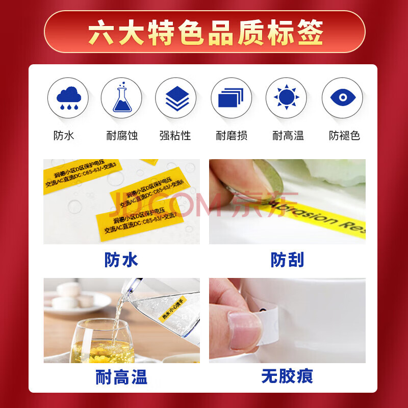 商品相册:e代标签色带9mm红底黑字TZe-421适用brother兄弟PT-D210标签机P700打印机P900打印纸18Rz标签纸第