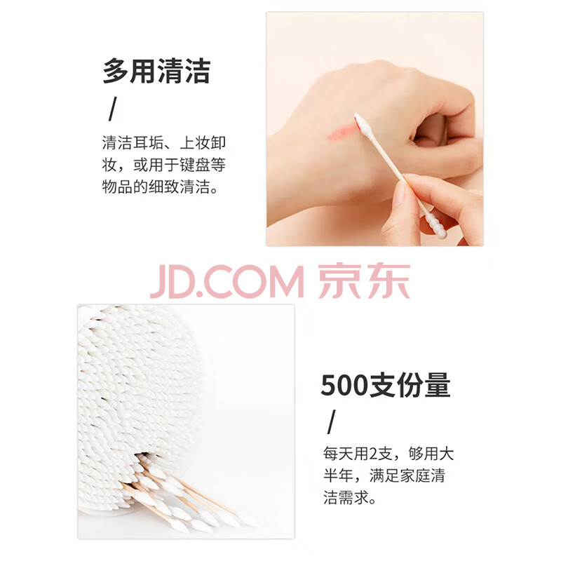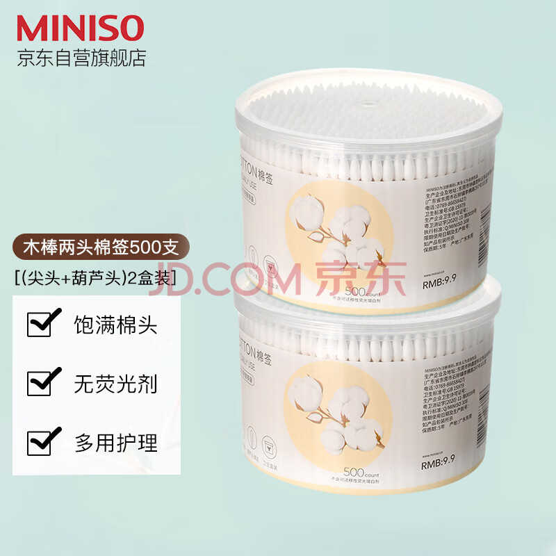 商品相册:名创优品(MINISO)棉签便携装棉棒化妆掏耳棉花棒500支*2盒装(尖头+葫芦头)第