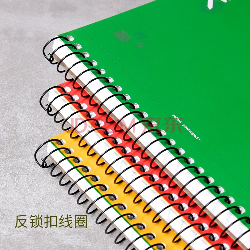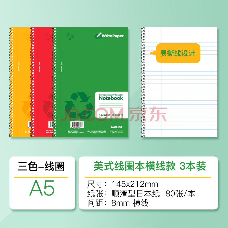 商品相册:凯萨(KAISA)美式笔记本A5/80张多巴胺三色线圈本 分栏横线记事本可撕本子 3本装第