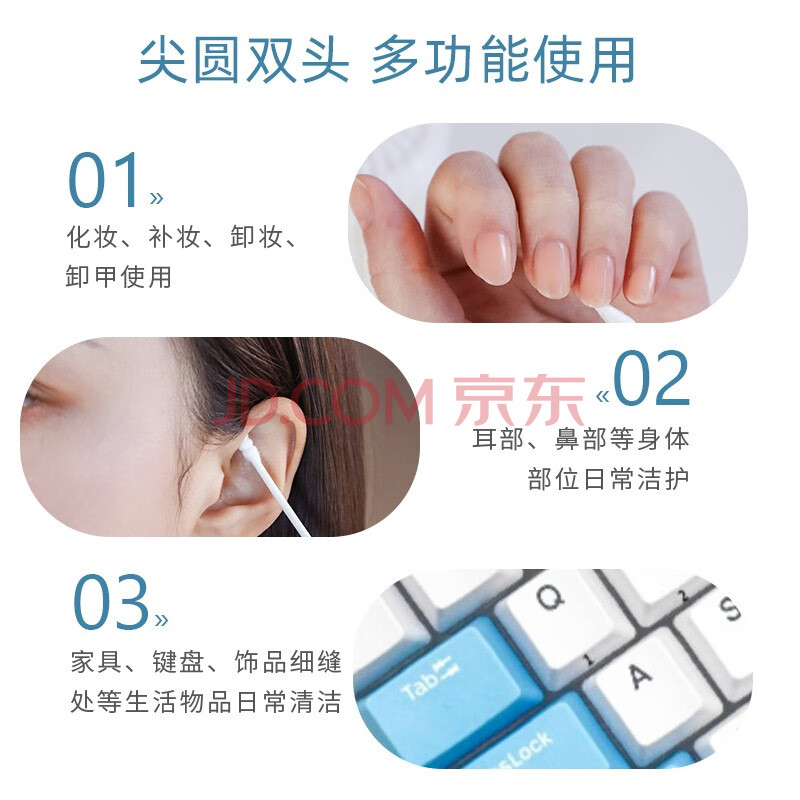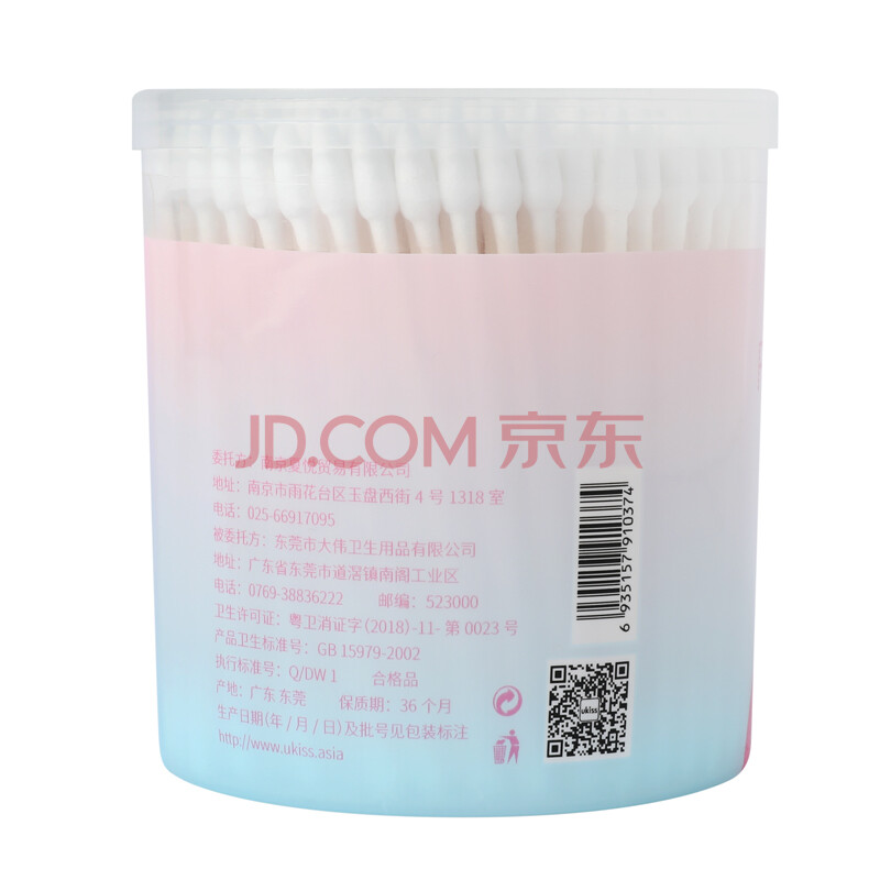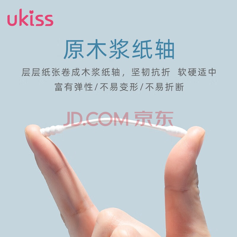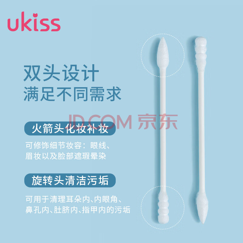 商品相册:悠珂思(ukiss)纸轴双头棉签200支*2盒 掏耳朵化妆棉签尖头螺旋圆头一次性清洁棒第