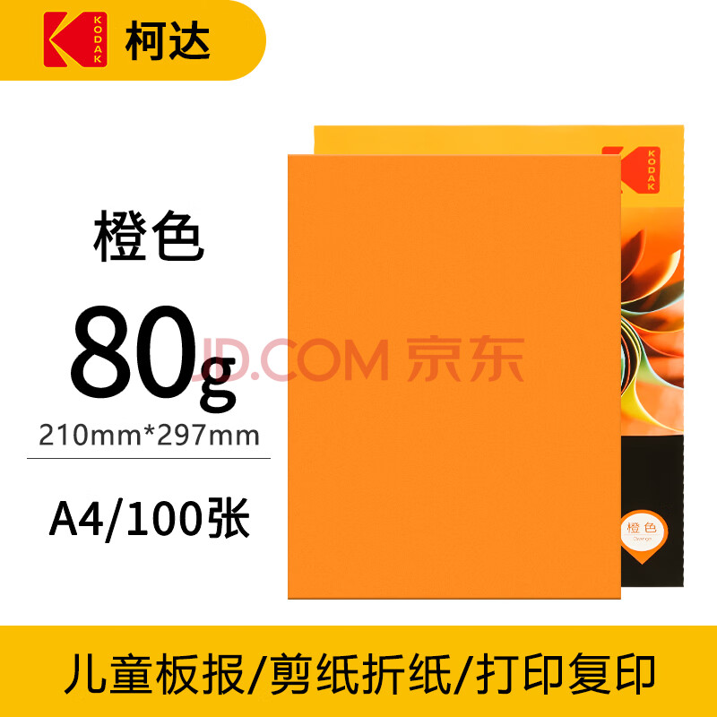 商品相册:KODAK柯达 彩色复印纸A4多功能打印纸儿童手工彩色卡纸千纸鹤折纸 橙色彩纸100张9891-125第
