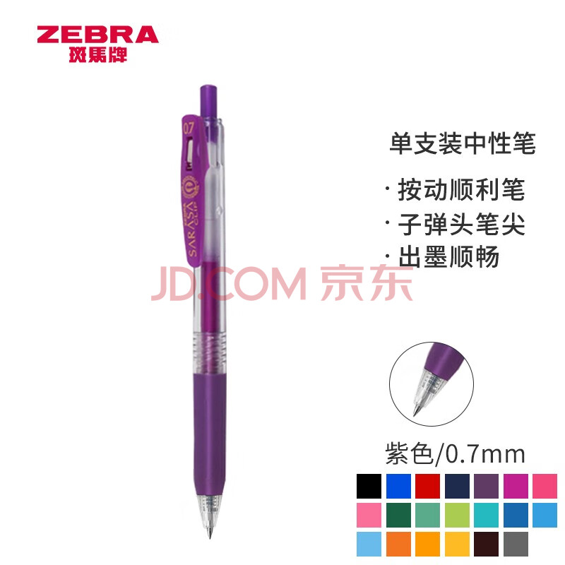商品相册:斑马牌(ZEBRA)按动中性笔 0.7mm子弹头啫喱笔签字笔 JJB15 学生子弹头签字笔 商务笔高颜值办公用品 紫色第