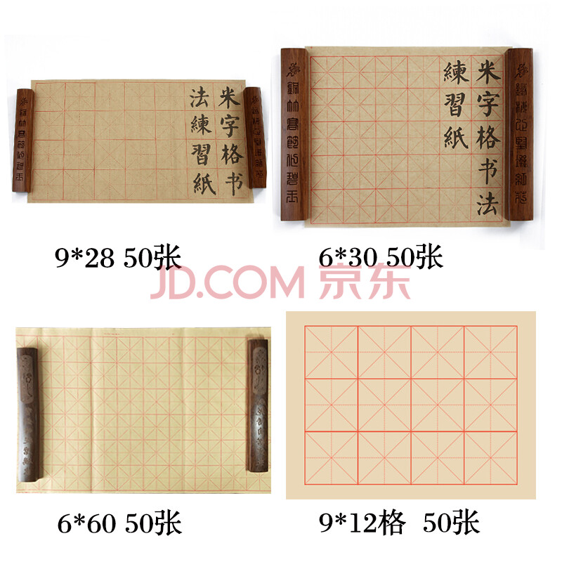 商品相册:一海堂 文化毛笔字帖 宣纸米字格毛笔书法米字格初学练习学生用纸毛边宣纸半生熟 9厘米*12格/70张第