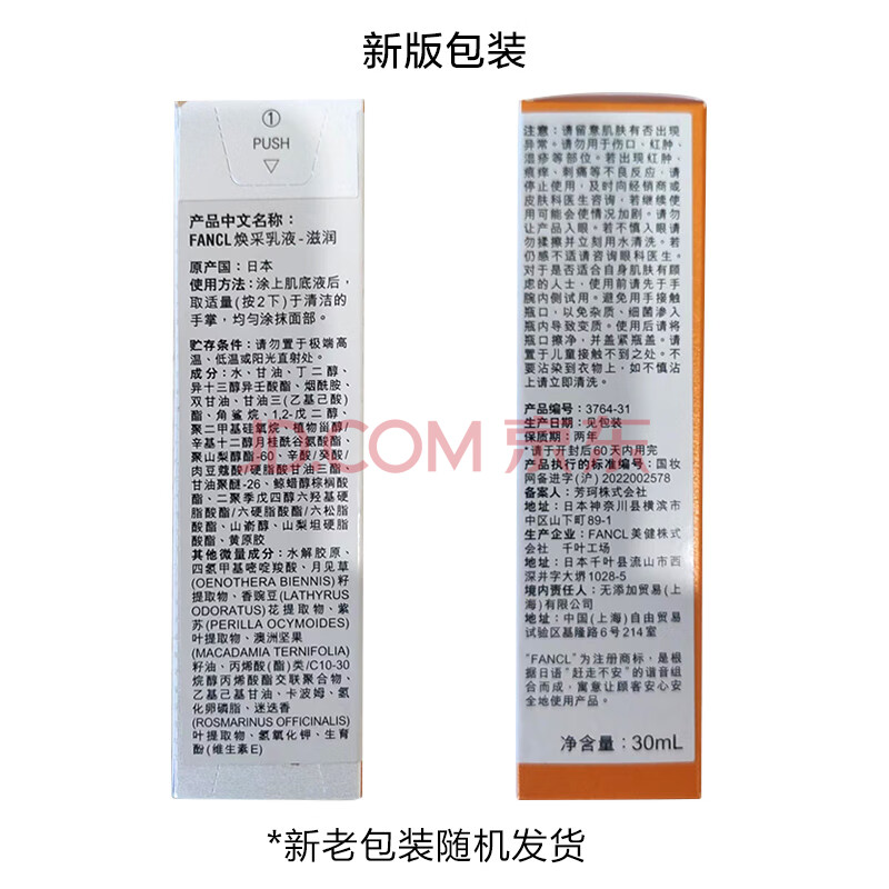 商品相册:芳珂(FANCL)焕采水乳护肤品套装-滋润(水30ml+乳液30ml)护肤品生日送女友第
