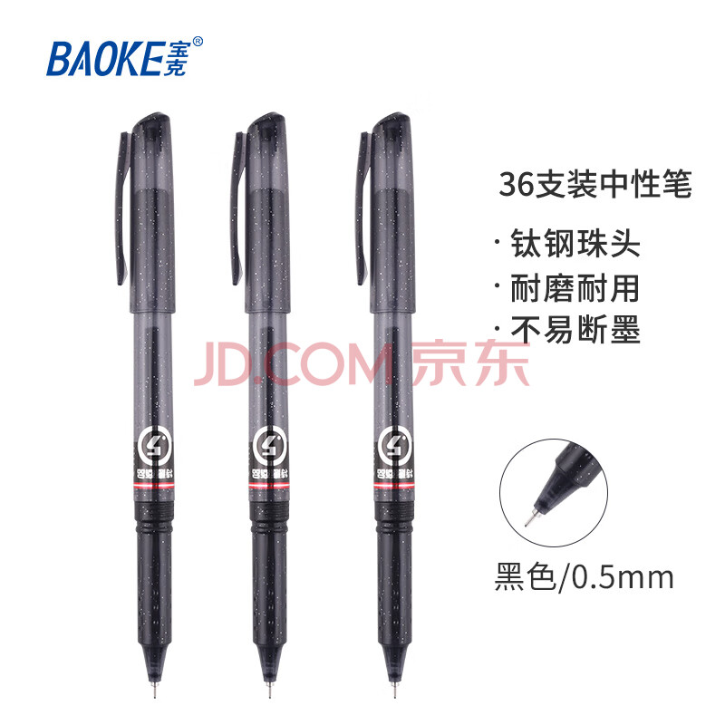 商品相册:宝克(BAOKE)PC1808 中性笔全针管0.5mm 学生水笔文具用品办公签字笔 黑色 36支/盒第