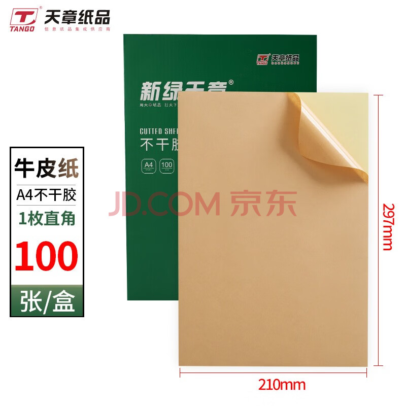 商品相册:天章 (TANGO)A4不干胶打印纸 100张/盒 黄牛皮纸铜版纸 贴纸背胶纸 标签贴纸激光喷墨打印机通用第