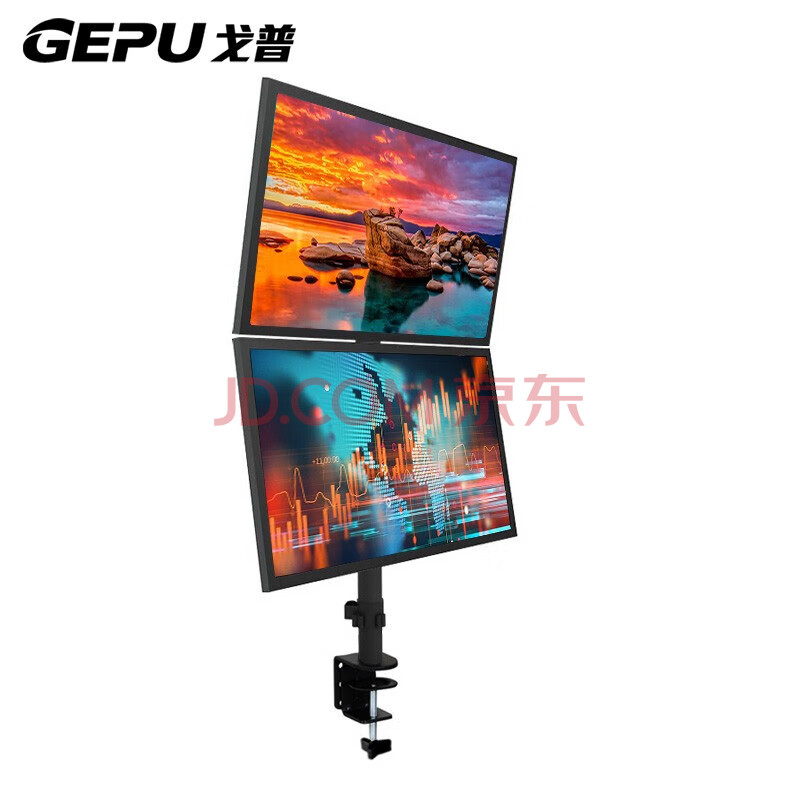 商品相册:戈普(GEPU)显示器支架双屏 上下双屏显示器支架 电脑增高屏幕支架 电脑支架升降免打孔(桌孔/夹桌安装)G2S第