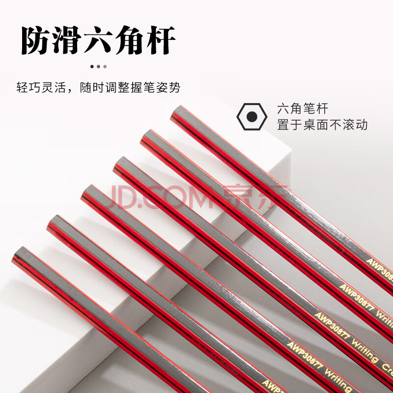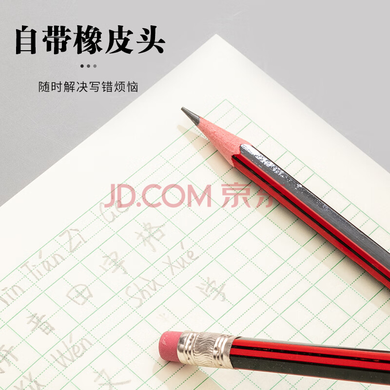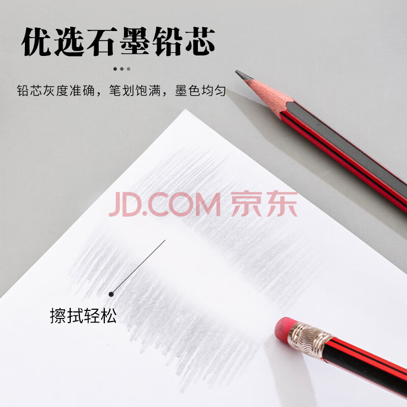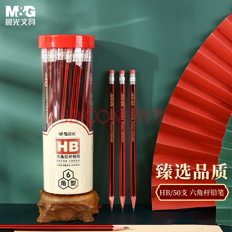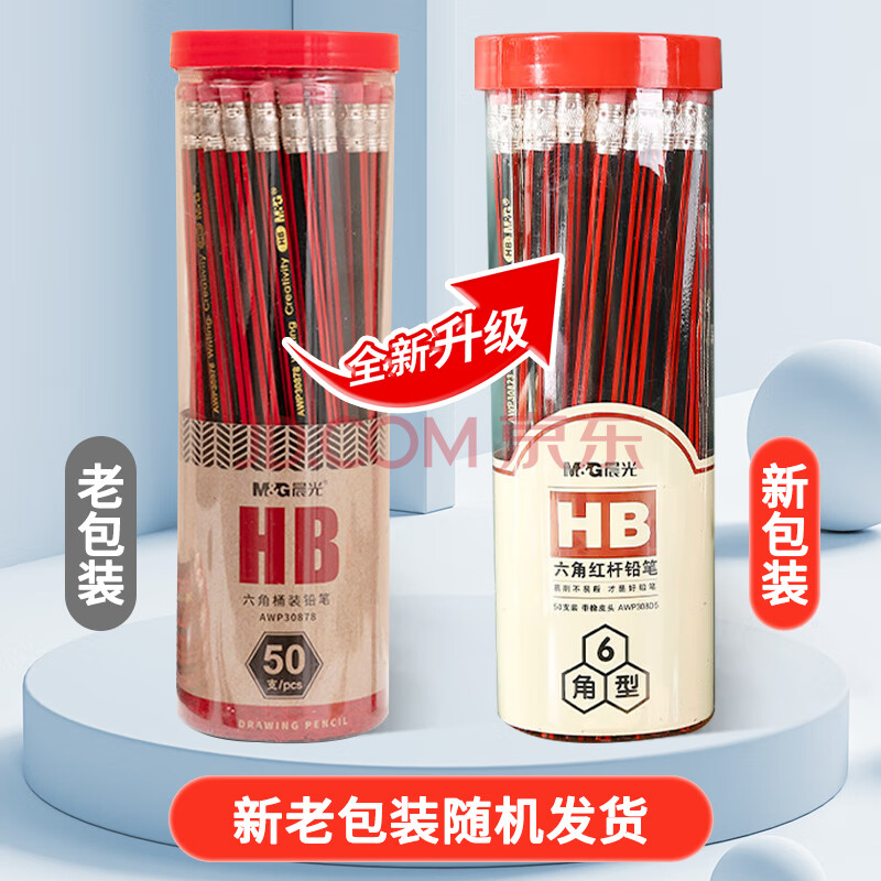 商品相册:晨光(M&G)(M&G)文具HB铅笔50支 红黑抽条六角木杆铅笔 学生开学书写美术素描绘图木质铅笔带橡皮头AWP308D5第